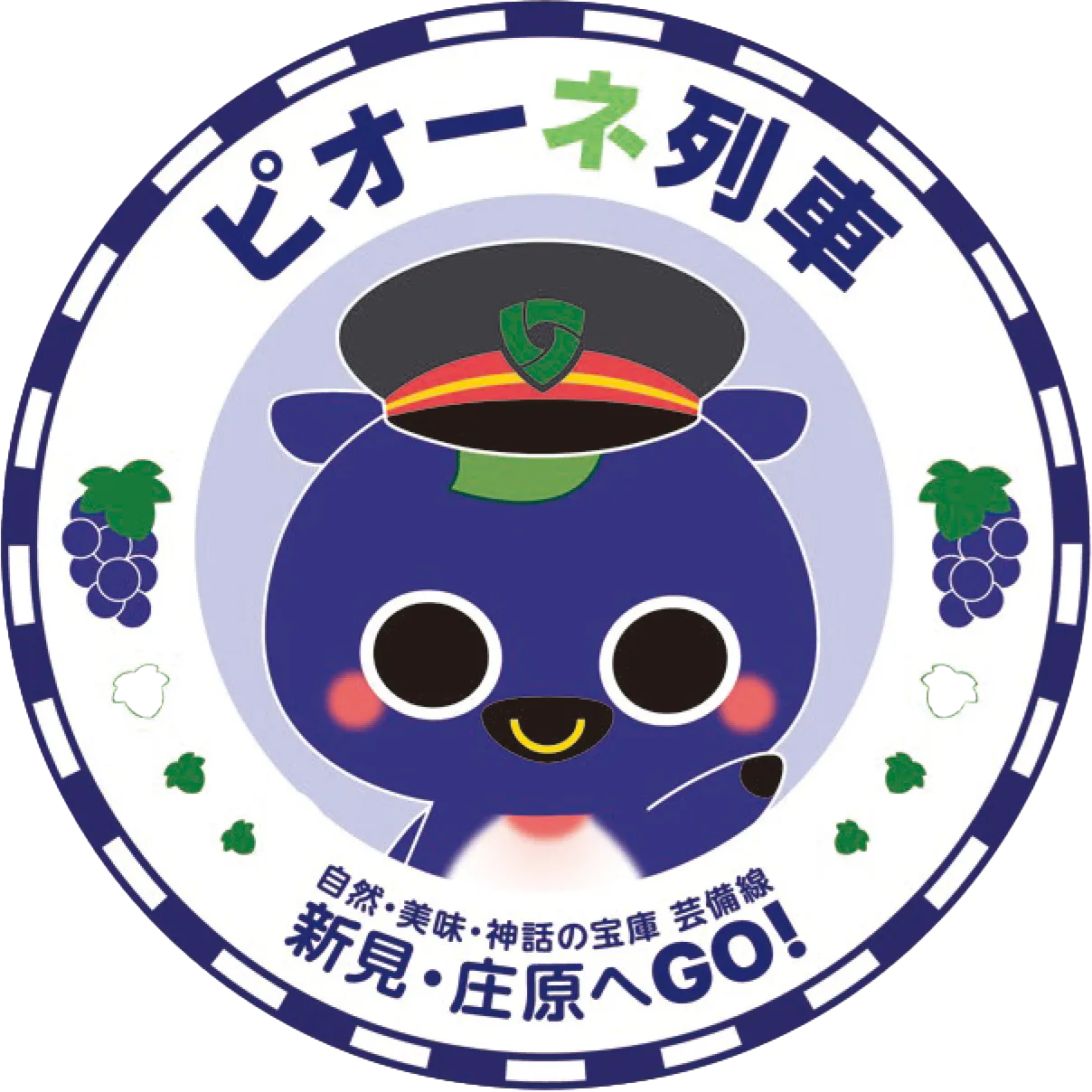 新見市のマスコットキャラクター「にーみん」で装飾した「ピオーネ列車」を運行します!